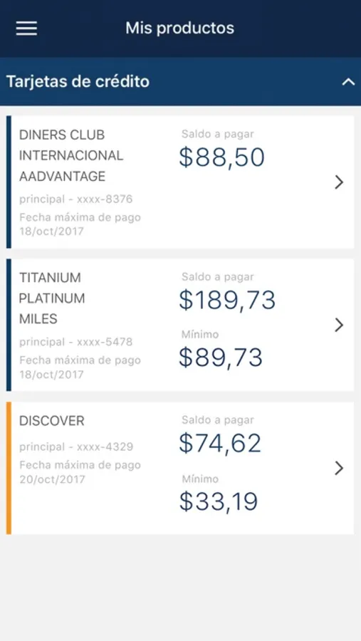- Acceder al detalle de saldos y movimientos Cashback (aplica para tarjetas Discover).