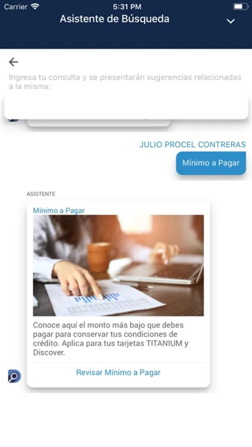- Consultar su saldo, fecha de pago y movimientos realizados con sus tarjetas.