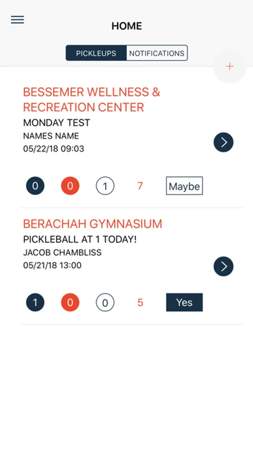Select the locations that you want to be notified when someone is trying to organize a pickleball gathering. Simply answer Yes, No, or Maybe as to whether you will be attending.
