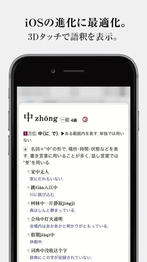 《重要なお知らせ》辞書の機能を使うには、ダウンロード後、アプリ内課金で購入を行う必要があります。従来アプリ『中日・日中辞典』をお使いの方には、優待価格のご提供があります。
