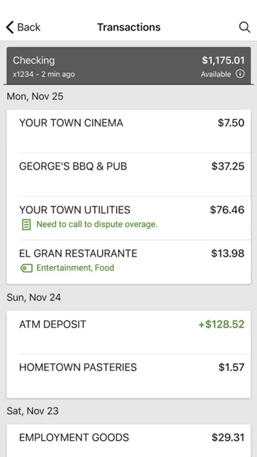 Add Tags, Notes, Images & Geo-Information: By enhancing transactions with custom tags, notes or photos of a receipt or check, you have the ability to stay organized and find exactly what you’re looking for when searching through your finances.