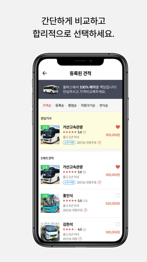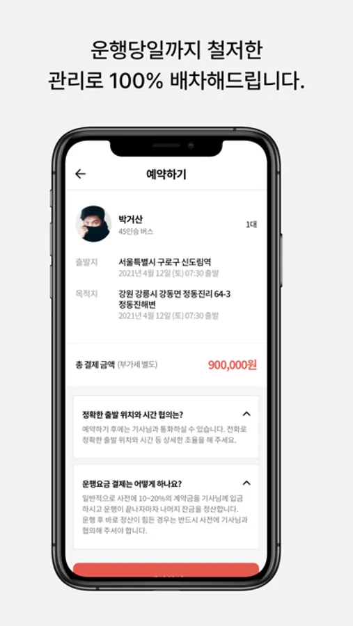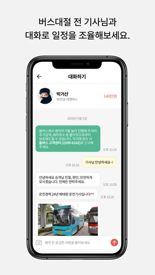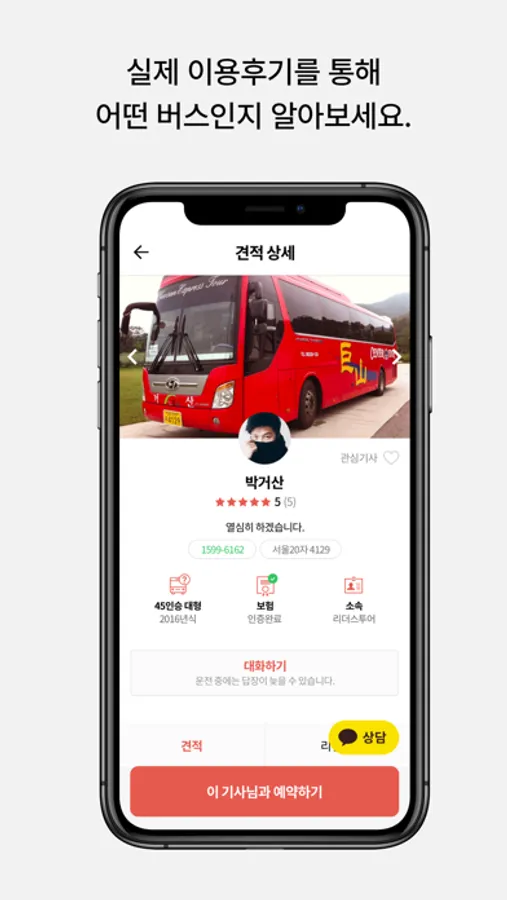 - 내가 탑승할 실제 버스사진, 차량연식, 기사님 후기와 평점을 확인하고 예약할 수 있습니다.