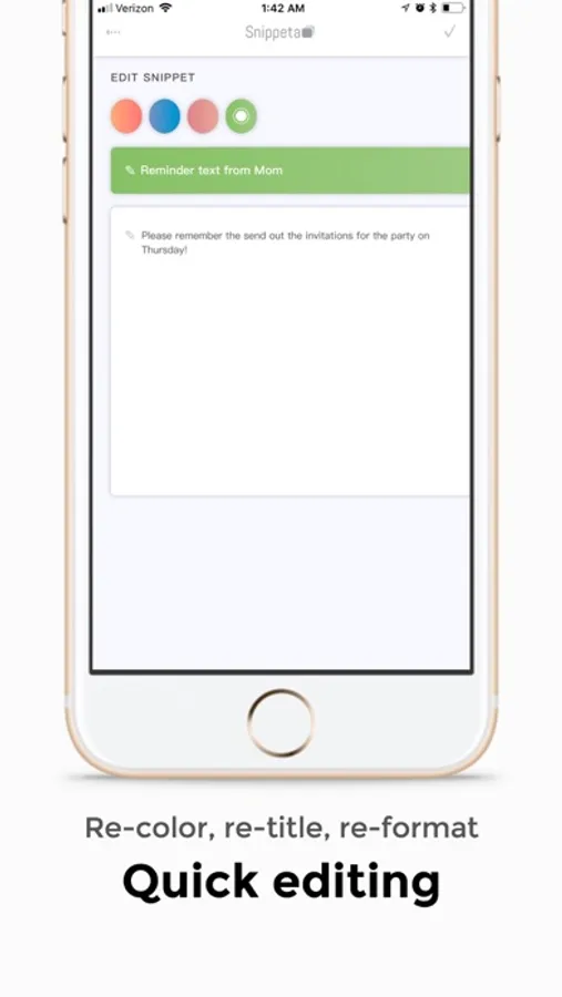 - Create up to 10 snippets (and go unlimited with one-time purchase of Snippeta Pro)