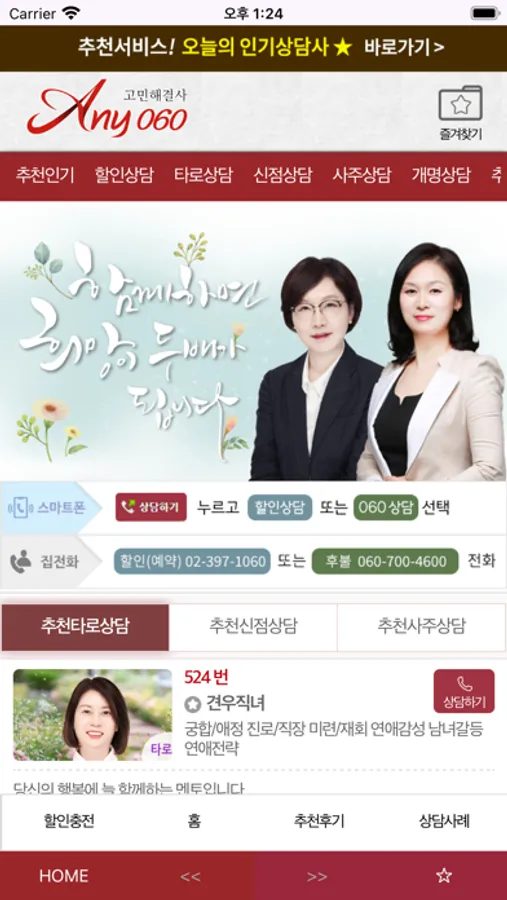 전국의 소문난 역학,무속,타로마스터와 060 또는1688할인 전화 운세상담을 하세요~