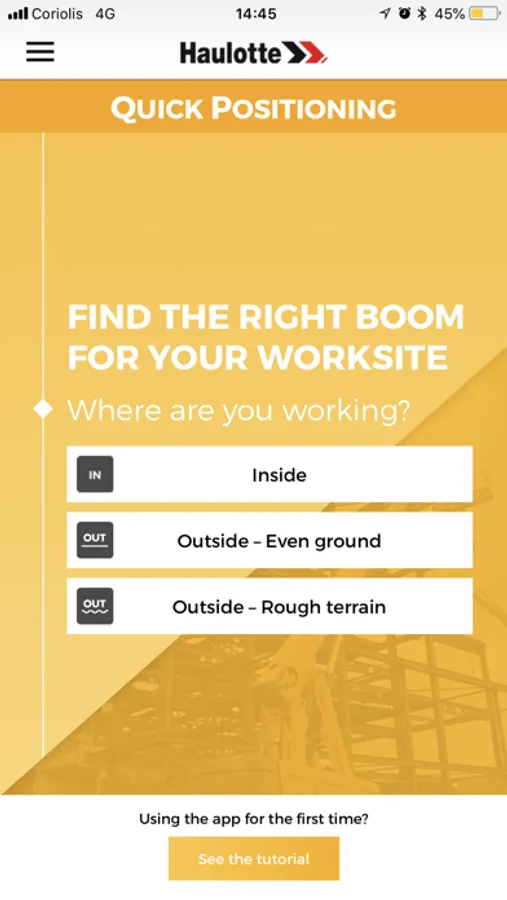 The Quick Positioning app helps you choose the most suitable boom lift for the work area you need to access.