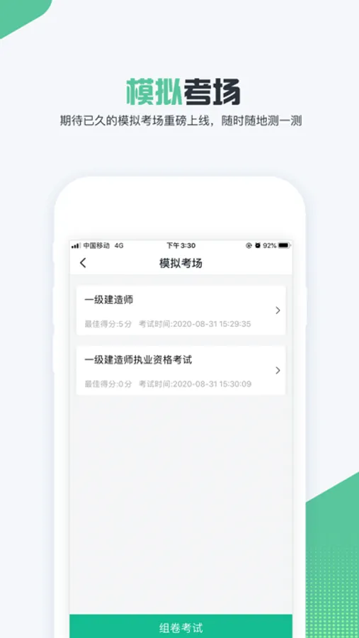 【主要功能】有章节练习、模拟考场、我的错题、我的收藏和考试指南,设计风格简单明了,利于考生快速上手。