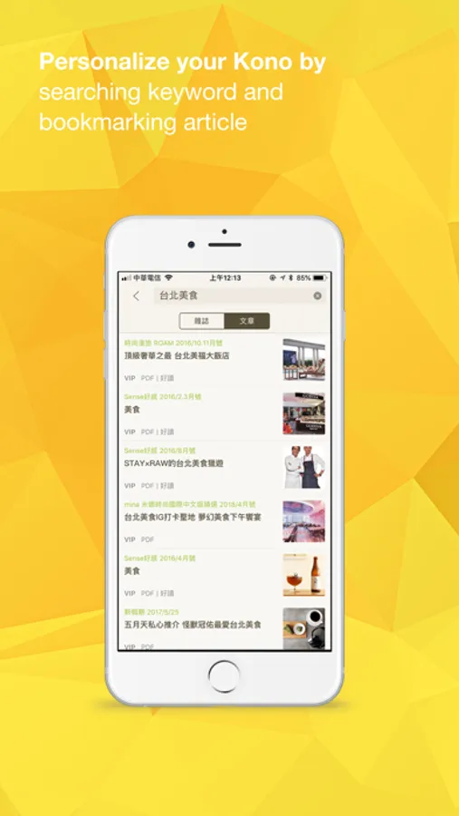 ● Personalize your Kono by following your favorite magazines and keyword search for interested topics. Bookmark articles for later reading, reference or sharing.