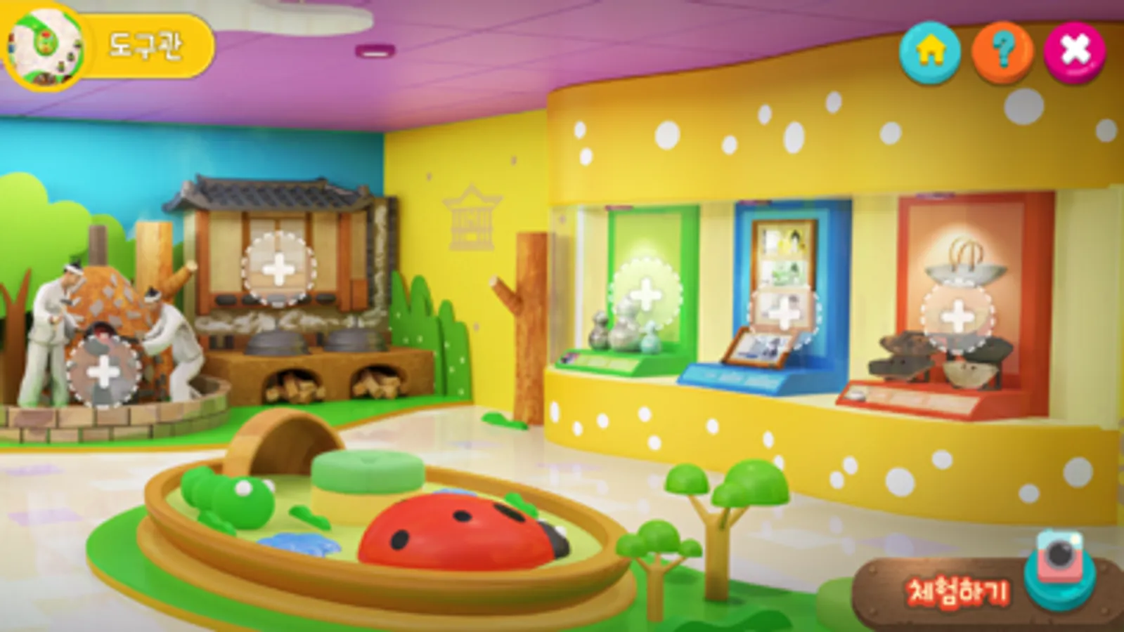솔루토이 한국사에는 주거관, 음식관, 예술관, 도구관, 의상관이 있어요. 다섯 개의 관을 둘러보며 유물과 도구에 대해 알아 보아요.