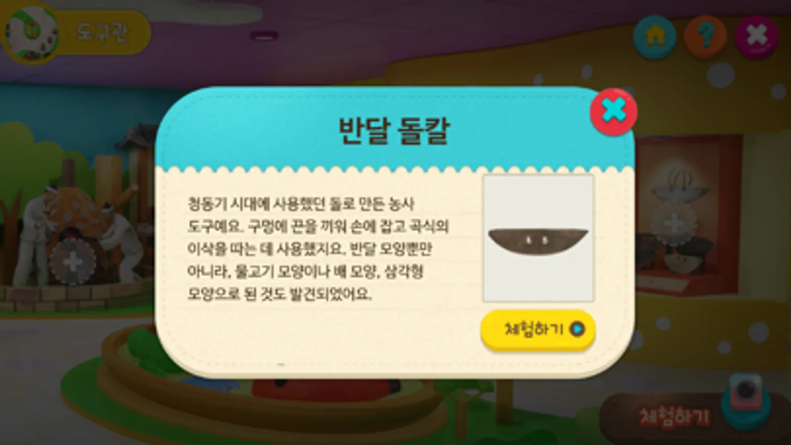 유물이나 도구 사진을 카메라로 비추면 체험 활동이 시작 돼요.