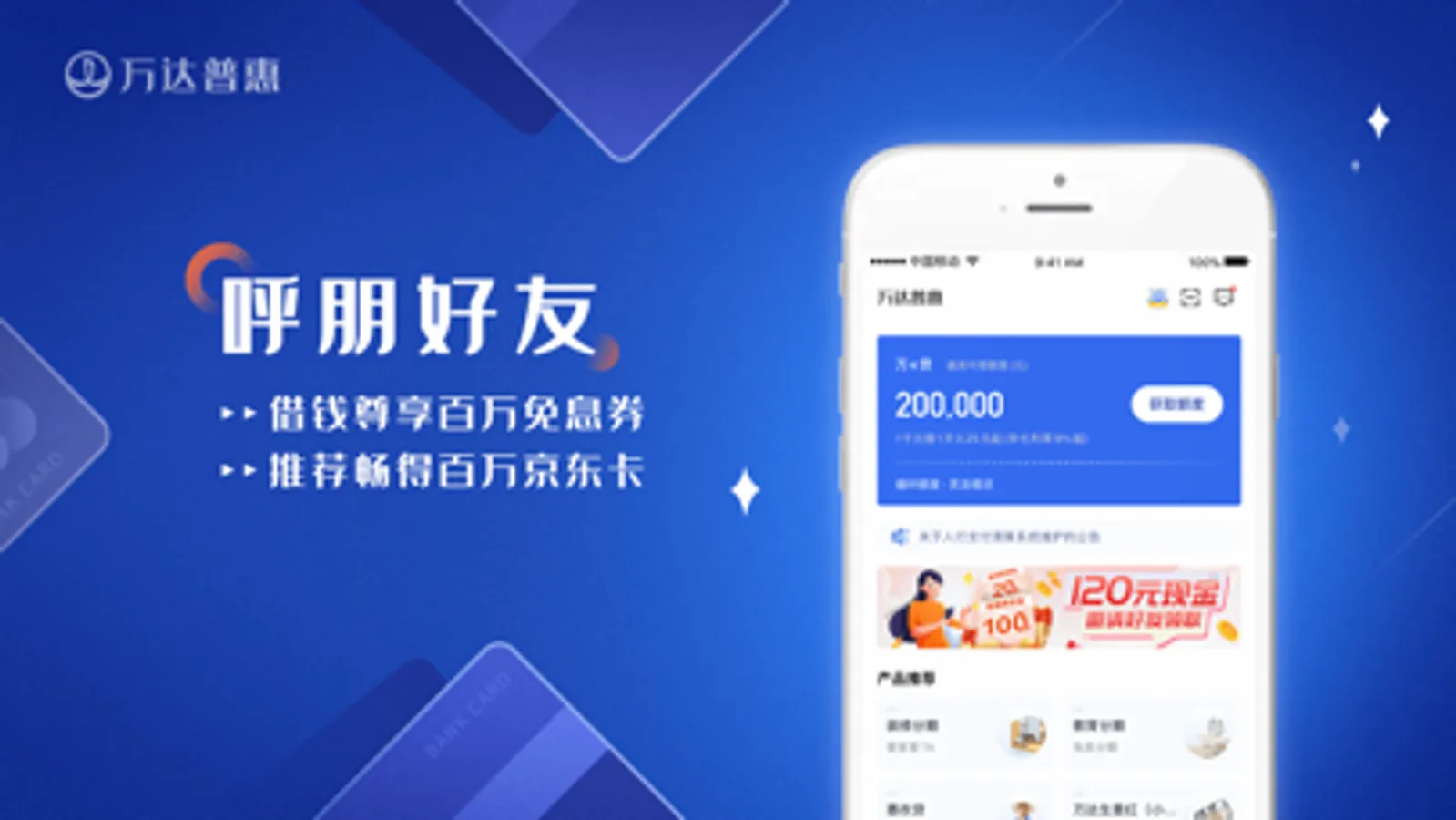 万达普惠为万达金融集团旗下全资子公司,为您提供优质信用贷款服务。线上极速申请,资料简单,实时审批,极速放款,随借随还,快速提现,专业的借钱贷款优质平台。