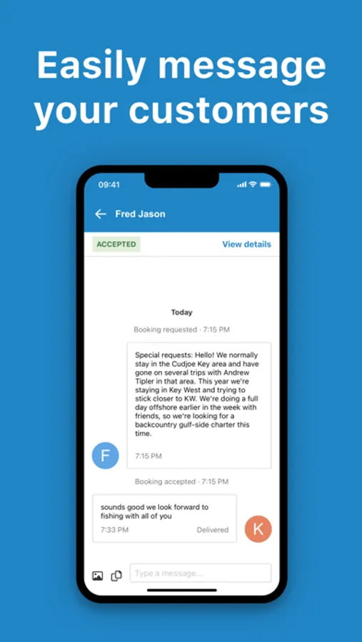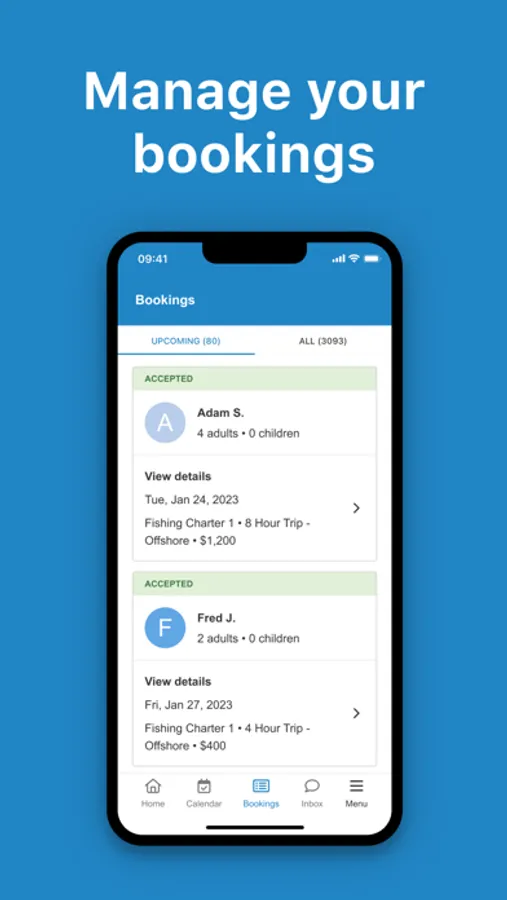 - Manage your bookings – view info, accept trips, and invite customers to fish with you