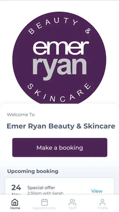 The Emer Ryan Beauty & Skincare app makes booking your appointments and managing your loyalty points even easier. You're just a few taps away from feeling good and looking great!
