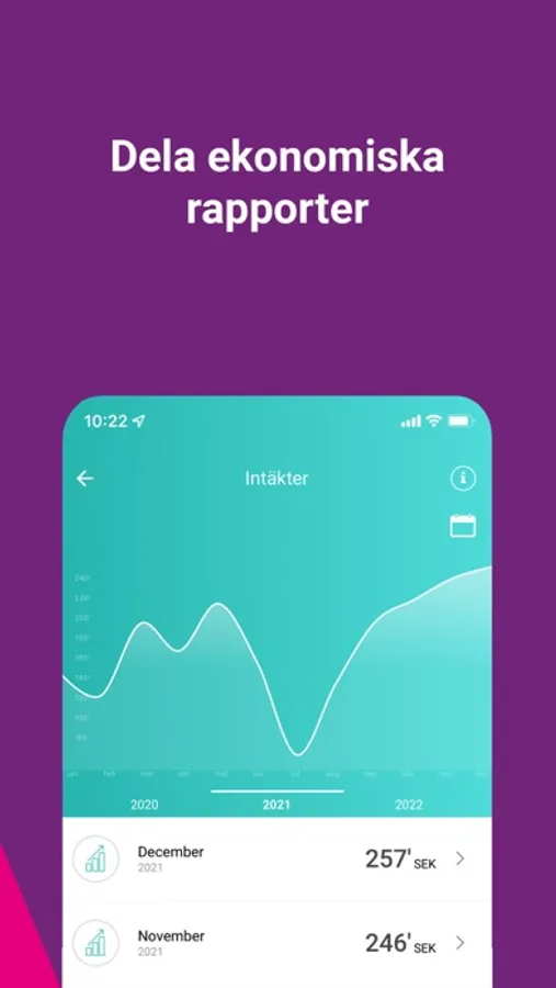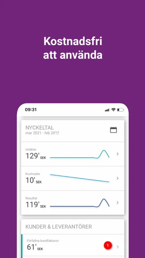 • Enkla grafer över dina intäkter, kostnader, och resultat.