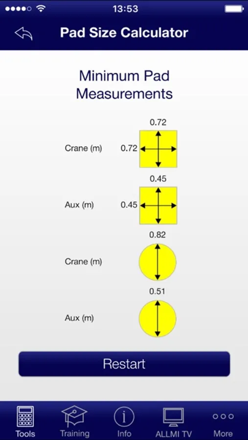 The ALLMI app also contains a range of tools, allowing the following to be calculated / established: