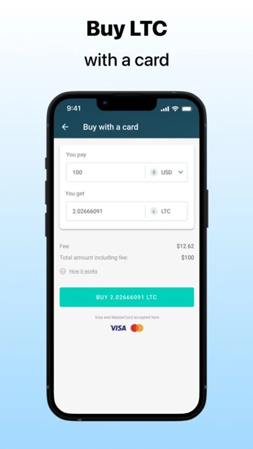 Don’t have any LTC, then buy it right in your mobile phone. You can pay with USD, EUR, GBP or other fiat currencies and get Litecoin instantly. We accept all major credit and debit cards (VISA, MasterCard, etc.) including pre-paid and virtual bank cards.