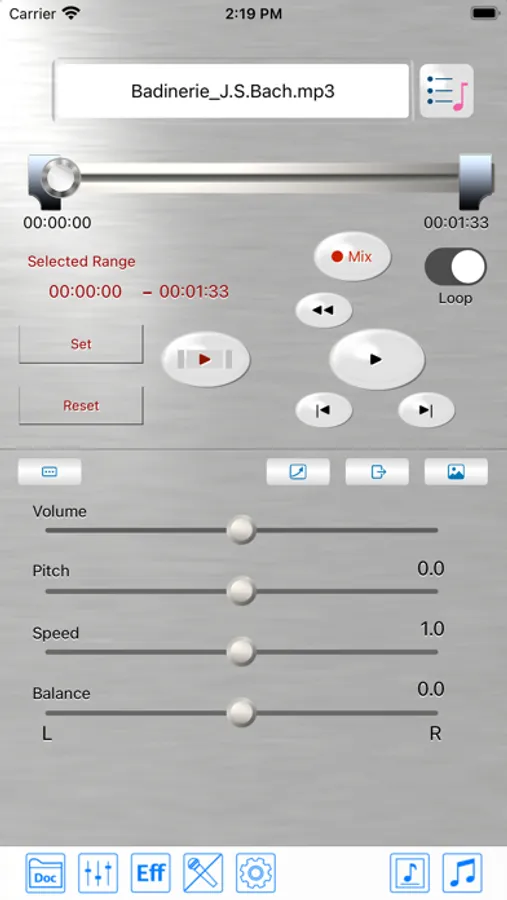 It has features such as 10-band equalizer, synchronized change of pitch and playback speed, reverb, distortion, and delay.
