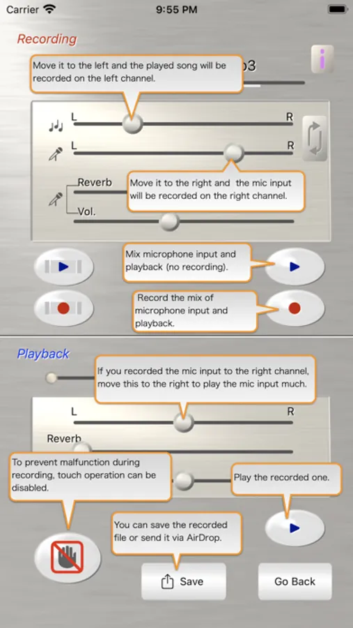 Also, recorded sound sources can be saved or sent via AirDrop.