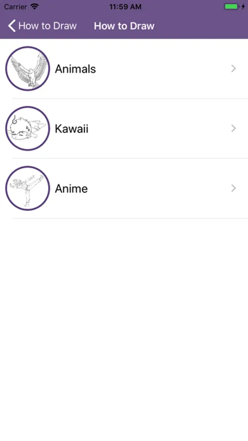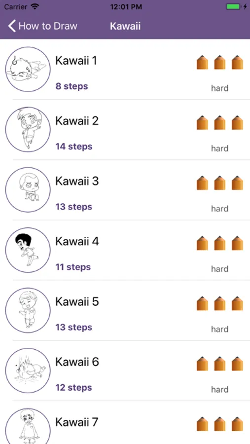 In this app you will find a great variety of simple drawings, however you can also find some more sophisticated ones thanks to the drawing techniques we will show you. You can learn how to draw anime step by step, kawaii, animals, etc.