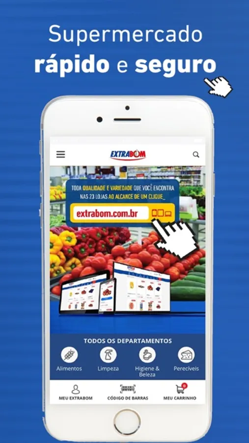 Para surpreender ainda mais quem já é apaixonado pelo nosso supermercado on-line, inovamos e lançamos o aplicativo Meu Extrabom.