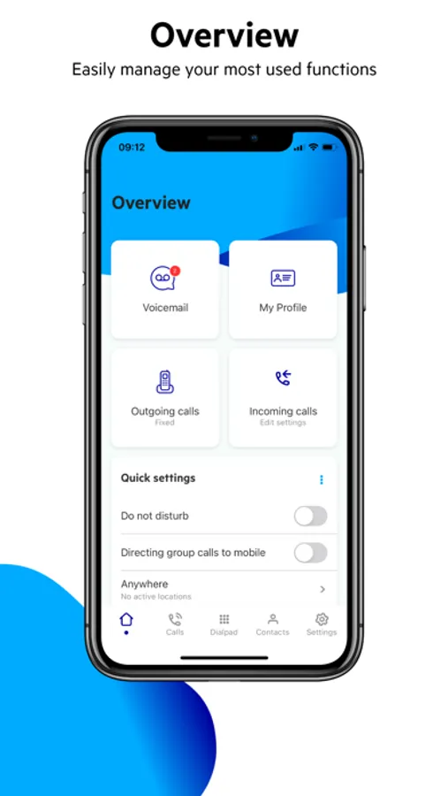 You can quickly forward all calls to voicemail, a colleague or other number or you can choose to present a recorded message stating that you are not available. If you have Fixed Mobile integration activated, you can set the way you want to be reachable and with whitch number/identity you want to call.
