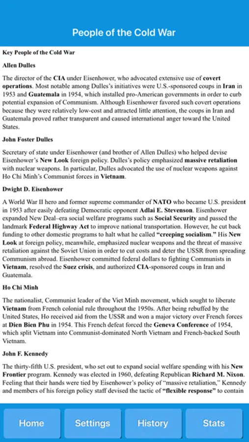 Test and improve your US the cold war history knowledge answering the questions with our quiz application. Our educational app also helpful for high school and graduate school students.