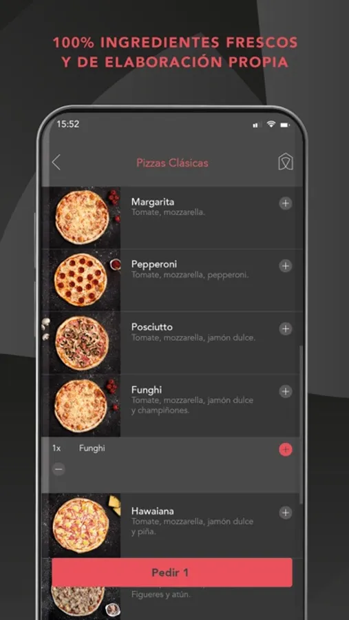 - Selecciona tu pizza favorita o crea la tuya con los ingredientes que prefieras