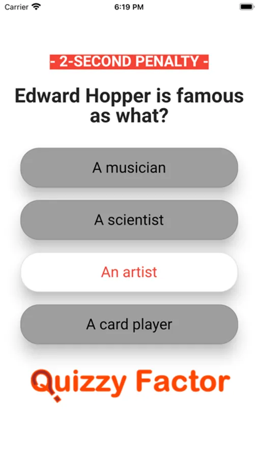 2 Seconds: Is the penalty when you get a question wrong. It will ruin your Quizzy Factor!