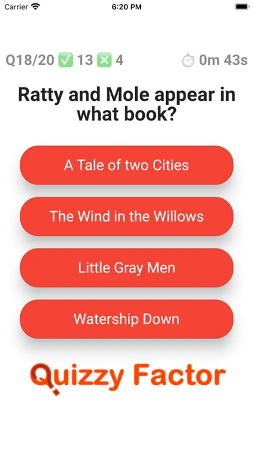 20 Questions: All you have to do is answer 20 questions. The more you get correct the higher your QuizzyFactor.