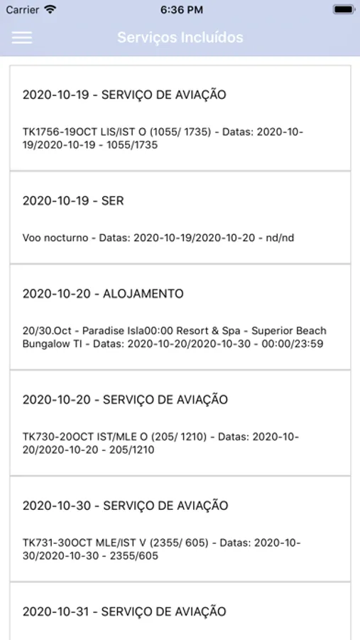• Todos os detalhes sobre os voos, hotel e outros serviços