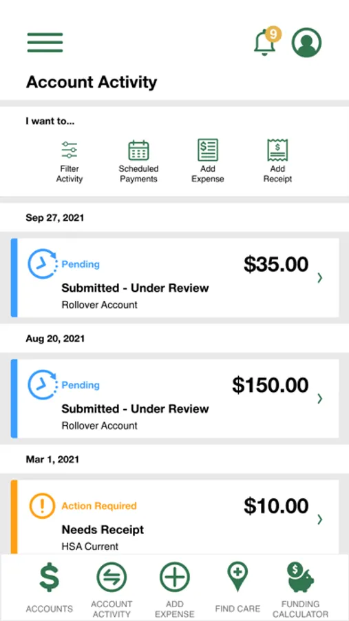 • Benefit Health Account balances and details