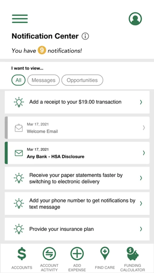 • Ability to fund HSA account from checking/savings account