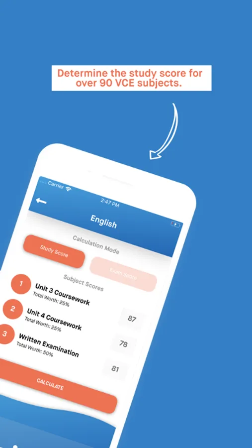 This application currently supports all VCE subjects and utilises grade distribution data from 2016-2018 to calculate your scores.