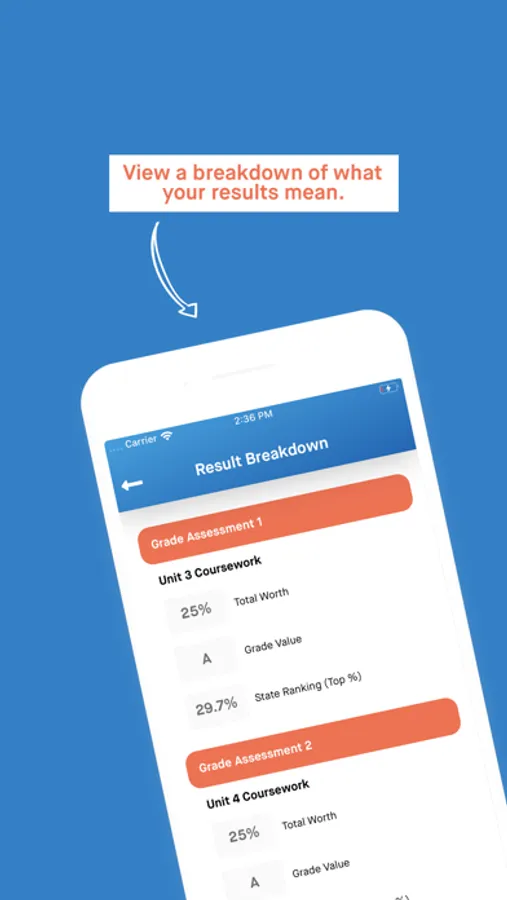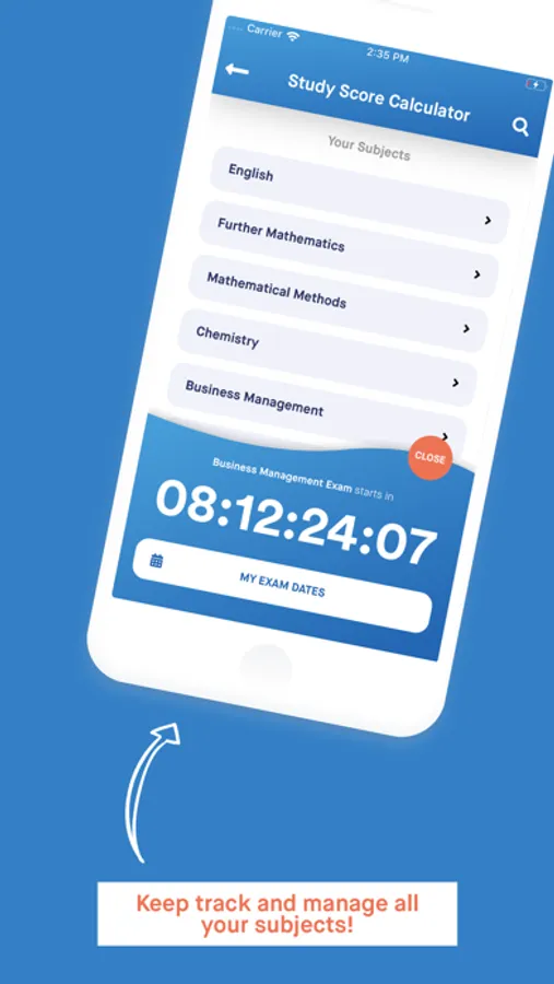 Simply choose your subject, enter the score (%) you got for each of your graded assessments and what you predict to get in the exam, and the app will calculate the range your study score is most likely to fall between. Alternatively, input the study score you hope you get and the app will calculate what you need on the exam to get that score!