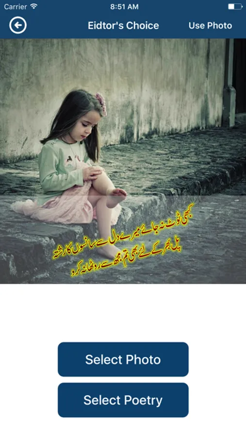 Download the Urdu Poetry and Text on Photos now and create your unique photos with urdu poetry on them and share it with your friends.