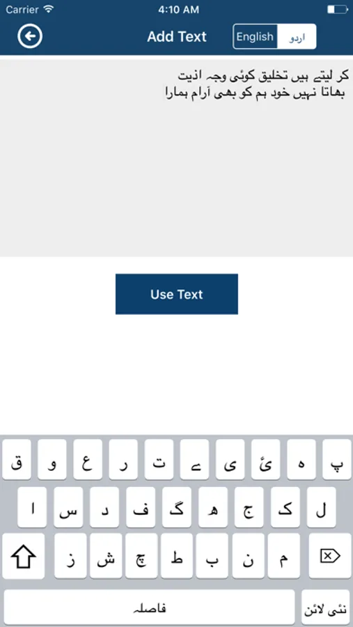 Text Editor – The simplest feature of Urdu Poetry and Text on Photos app is the text editor. With the help of this feature you can select from a variety of text fonts and place them on various backgrounds.