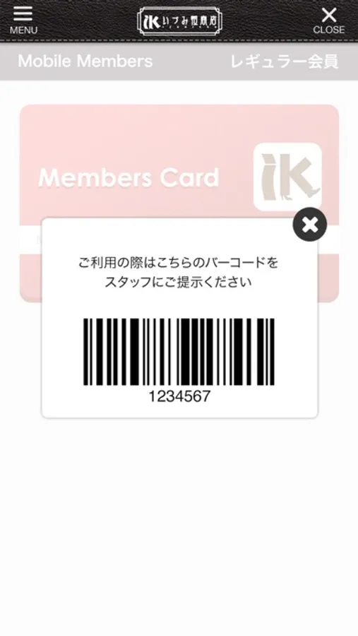 「会員番号バーコード」の表示機能は、店頭で提示することで、スムーズな会計が可能です。