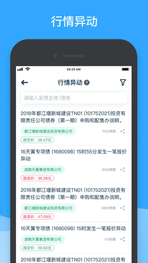 8、债券详情。动态展示债券价格,全方位挖掘主体信息,提供直观的投资分析