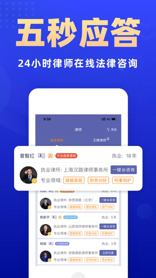 【即时沟通】无需等待和预约,执业律师在线五秒应答,即时解答法律问题,不让您的烦恼陪您过夜;