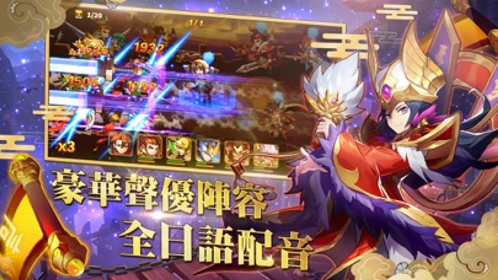 熊貓遊戲特別邀請日本頂級聲優助陣--釘宮理惠、內田真禮、松岡禎丞、下野紘等全程日語錄製配音,詮釋每位武將的究極奧義,玩家更能身歷其境享受遊戲磅礡故事劇情及副本內容!