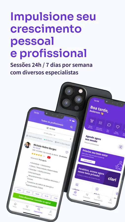 Você também pode agendar sessões a partir de R$ 60 por chat ou vídeo-sessão com um de nossos +150 especialistas em psicologia, terapia alternativa, coaching, psicanálise ou mindfulness.