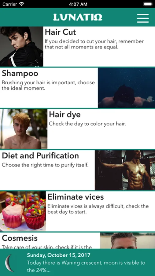 Thank Lunatio now you can follow the rhythms of the moon to have better health and become more beautiful / handsome. Find out what are the best days to: