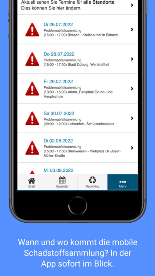 * Wann und wo kommt die mobile Schadstoffsammlung? In der App sofort im Blick.