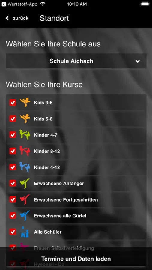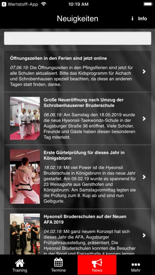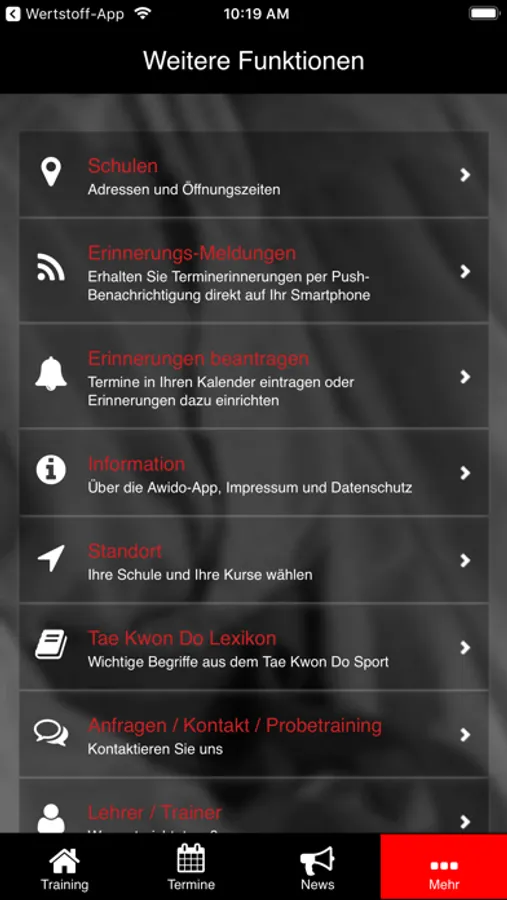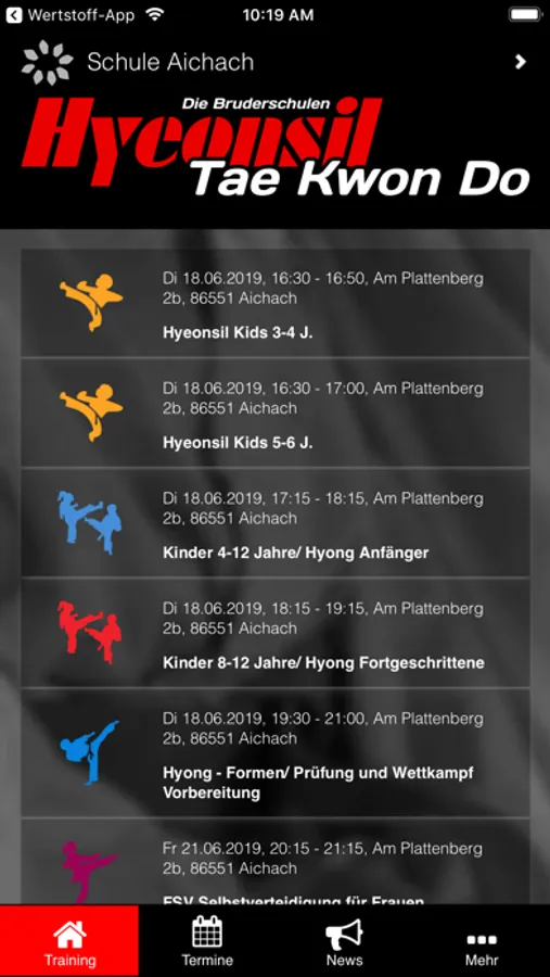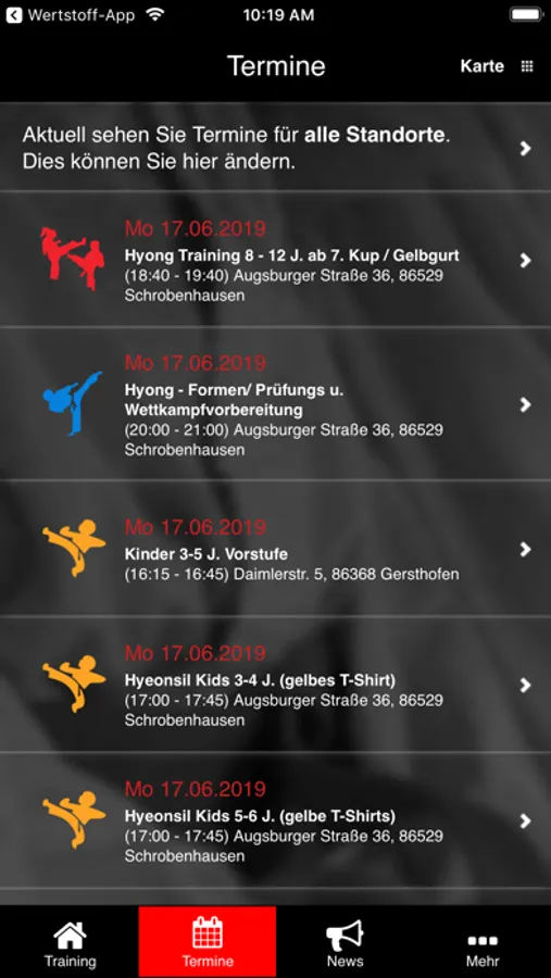 * Wann und wo ist die nächste Gürtelprüfung? In der App sofort im Blick.