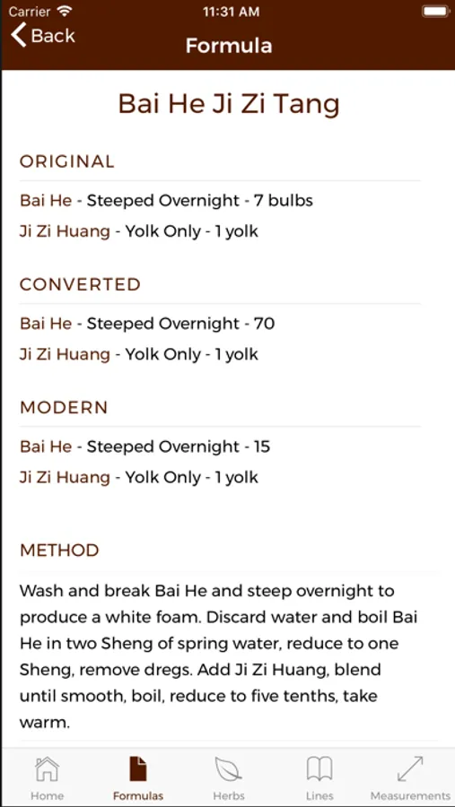 Chinese Medicine Classics allows the user full access to all the herbs, lines and formulas of both the Shang Han Lun and Jin Gui Yao Lue. Chinese Medicine Classics also allows the user to easily navigate in a clinical setting, quickly and accurately allowing access to all the information needed to make a concise decision on formula or herb selection.