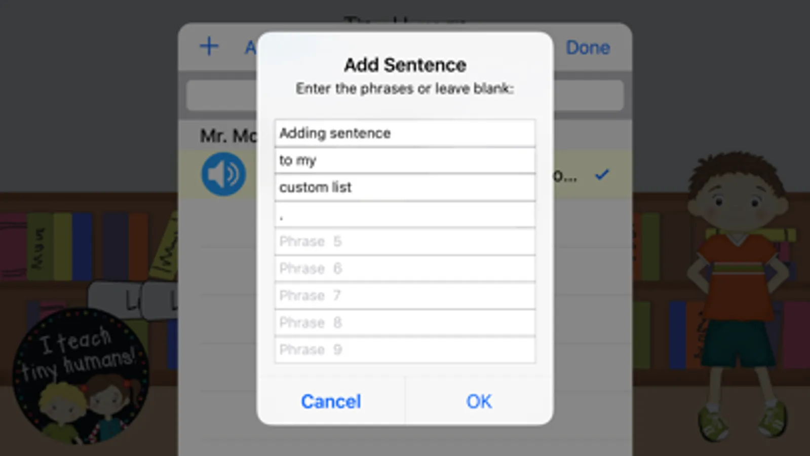 Every list and sentences within the lists can be activated or inactivated to further allow you to focus your child or student's learning activities. This app is engaging and has been successfully used in classroom and home settings to improve reading skills and confidence in learning.