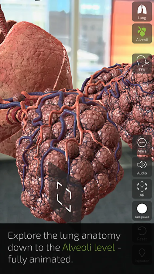 Rotate and scale the high-resolution lung floating in front of you and feast your eyes on highly detailed textures.
