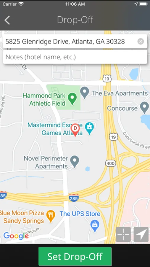 • Select pickup and drop-off locations visually without typing, on the map, even if you do not know the exact location.