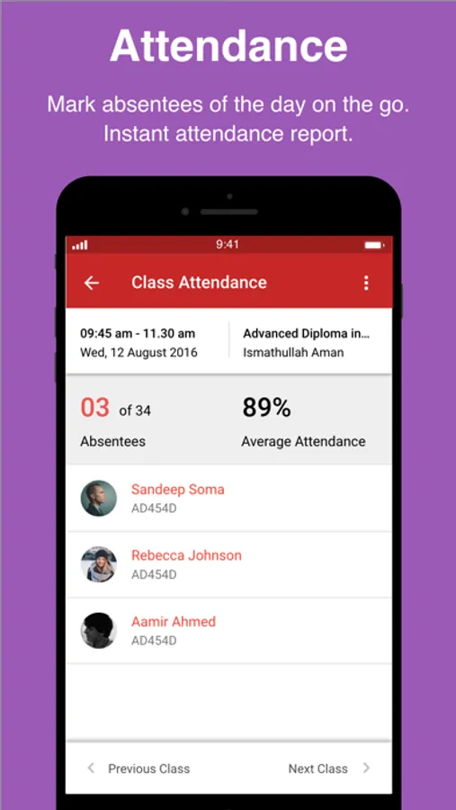 Mark Attendance : You can mark attendance right from the classroom with your mobile. It is easier than ever to mark the absentees and access the attendance report of a class.