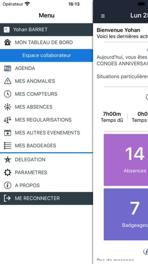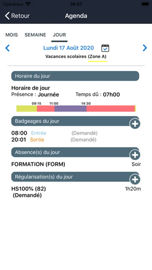 - Voir ses anomalies et poser des demandes pour régulariser les situations en anomalie.