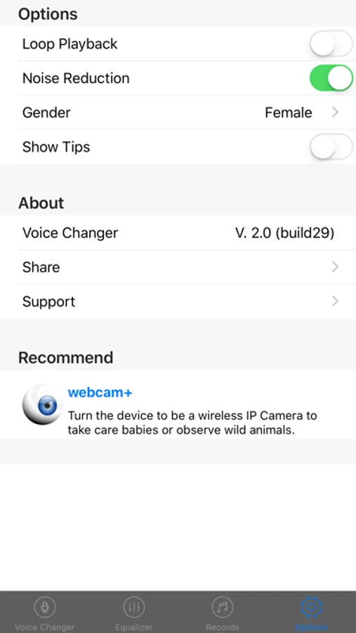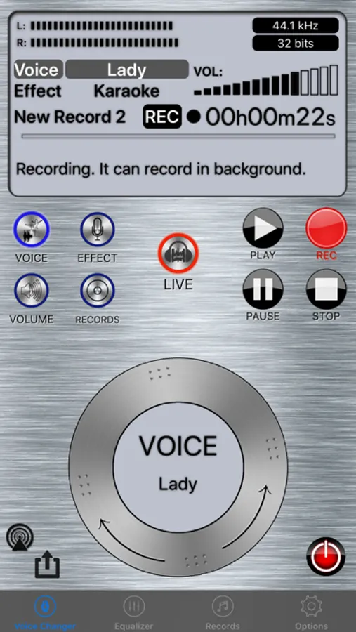 The app can change your voice in real time: speaking to the microphone of the iOS device, the sync output in the speaker is changed voice. You can use fake gender voice:male/female. You can act as tom cat, squirrel, Darth Vader, etc. There are 11 live voices you can use. And even you can tune the tone color with a special designed 12-band equalizer to make the voices more natural. It gives you a chance to easily confuse your friend with phone calls, voice chats of game or social apps and so on. What you need are the app, another phone and a set of soundboxes.